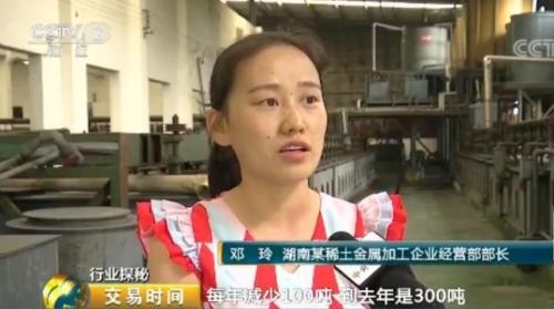 江西全南晶環(huán)科技有限責任公司經(jīng)營部長鐘丹平:1萬左右吧,漲到一萬四五江西全南包鋼晶環(huán)稀土有限公司副總經(jīng)理王日光:原來我們當時設計的產(chǎn)能是3000多噸,現(xiàn)在因為這個稀土是國家指令性計劃生產(chǎn),這個影響呢就是說現(xiàn)在給我們核心的指標是每年都是800噸。