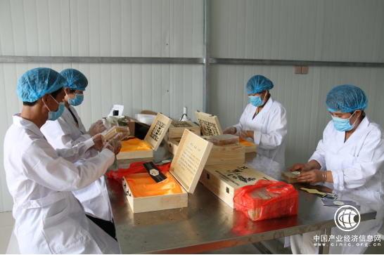 務(wù)工群眾在小店鄉(xiāng)山底村扶貧就業(yè)車間里整理包裝蜂蜜產(chǎn)品