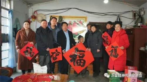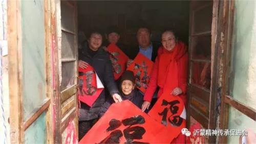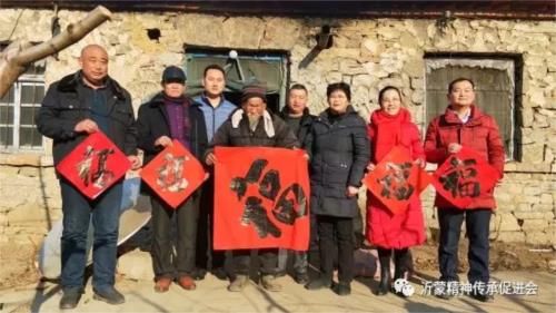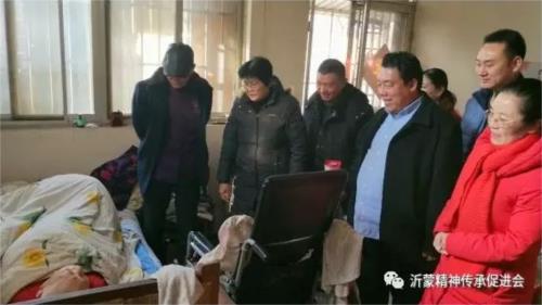 2月8日,山東省臨沂市沂蒙精神傳承促進會(以下簡稱“促進會”)副會長徐玉華、范遵厚、常務理事王振玉、會辦公室董希華、蘇曉濤等一行10人,在會長“沂蒙新紅嫂”于愛梅的帶領下,對解放前老軍人、老黨員、老紅嫂等革命前輩進行了走訪慰問,送上象征健康幸福的“五福”。