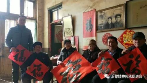 這次慰問活動之所以選擇送“五福”為主題,主要考慮到:一是那些曾為中華人民共和國的建立和經濟建設事業(yè)立下過功勞的老革命們大多年事已高,且存在這樣那樣的健康問題;二是人民生活水平越來越高,吃喝穿用已不是問題,他們更需要的是人文關懷,給他們以心靈的安慰;三是我們漢民族歷來有春節(jié)送福習俗,是一種優(yōu)良的孝親敬老傳統。而“五福”,具有“長壽”、“富貴”、“康寧”、“好德”、“善終”等基本含義,用來祝福長輩們或德高望重的人,是最合適不過的禮物。為此,促進會日前專門從縣書法家協會請來車尊友、高憲奎、朱銘渠三書法高手,為老革命、老黨員、老紅嫂們寫了若干福字作為獻給那些老革命的禮物。(沂蒙精神傳承促進會 于曉華)