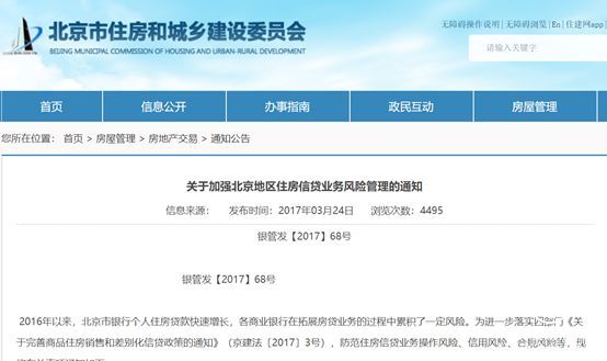 一周之后的3月24日,央行營管部、北京銀監(jiān)局、北京市住建委和北京住房公積金管理中心聯(lián)合發(fā)布《關(guān)于加強(qiáng)北京地區(qū)住房信貸業(yè)務(wù)風(fēng)險(xiǎn)管理的通知》。