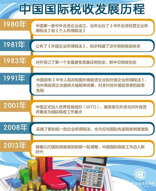 2001年,中國正式加入世界貿易組織(WTO),服務吸引外資與對外投資并重成為國際稅收工作重點。2008年實施了新的統(tǒng)一的企業(yè)所得稅法,全方位與國際先進稅收制度接軌。2013年隨著G20國際稅收規(guī)則的新一輪調整,中國國際稅收工作邁入新時代。