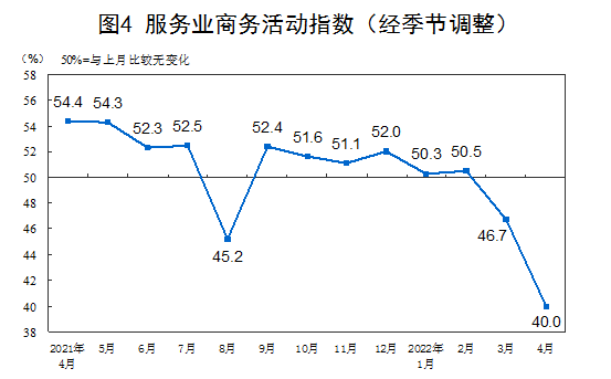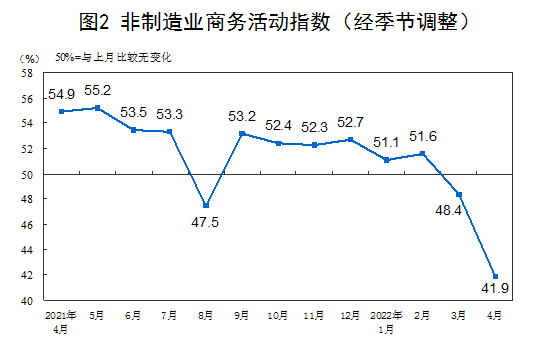 4月份,非制造業(yè)商務(wù)活動(dòng)指數(shù)為41.9%,比上月下降6.5個(gè)百分點(diǎn),低于臨界點(diǎn),非制造業(yè)經(jīng)營(yíng)活動(dòng)總體繼續(xù)放緩。