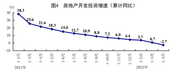 1-4月份,全國(guó)規(guī)模以上工業(yè)增加值同比增長(zhǎng)4.0%,比1-3月份回落2.5個(gè)百分點(diǎn)。分三大門類看,采礦業(yè)增加值同比增長(zhǎng)10.4%,制造業(yè)增長(zhǎng)3.2%,電力、熱力、燃?xì)饧八a(chǎn)和供應(yīng)業(yè)增長(zhǎng)5.0%。高技術(shù)制造業(yè)增加值同比增長(zhǎng)11.5%。分經(jīng)濟(jì)類型看,國(guó)有控股企業(yè)增加值同比增長(zhǎng)3.1%;股份制企業(yè)增長(zhǎng)5.8%,外商及港澳臺(tái)商投資企業(yè)下降2.8%;私營(yíng)企業(yè)增長(zhǎng)5.1%。分產(chǎn)品看,原煤、十種有色金屬等基礎(chǔ)工業(yè)品產(chǎn)量分別同比增長(zhǎng)10.5%、0.7%,新能源汽車、太陽(yáng)能電池、移動(dòng)通信基站設(shè)備等綠色智能數(shù)字產(chǎn)品產(chǎn)量分別增長(zhǎng)112.7%、27.5%、25.9%。4月份,全國(guó)規(guī)模以上工業(yè)增加值同比下降2.9%,環(huán)比下降7.08%。其中,采礦業(yè)增加值同比增長(zhǎng)9.5%,制造業(yè)下降4.6%,電力、熱力、燃?xì)饧八a(chǎn)和供應(yīng)業(yè)增長(zhǎng)1.5%。高技術(shù)制造業(yè)增加值同比增長(zhǎng)4.0%。4月份,制造業(yè)采購(gòu)經(jīng)理指數(shù)為47.4%,企業(yè)生產(chǎn)經(jīng)營(yíng)活動(dòng)預(yù)期指數(shù)為53.3%。1-3月份,全國(guó)規(guī)模以上工業(yè)企業(yè)實(shí)現(xiàn)利潤(rùn)總額19556億元,同比增長(zhǎng)8.5%。