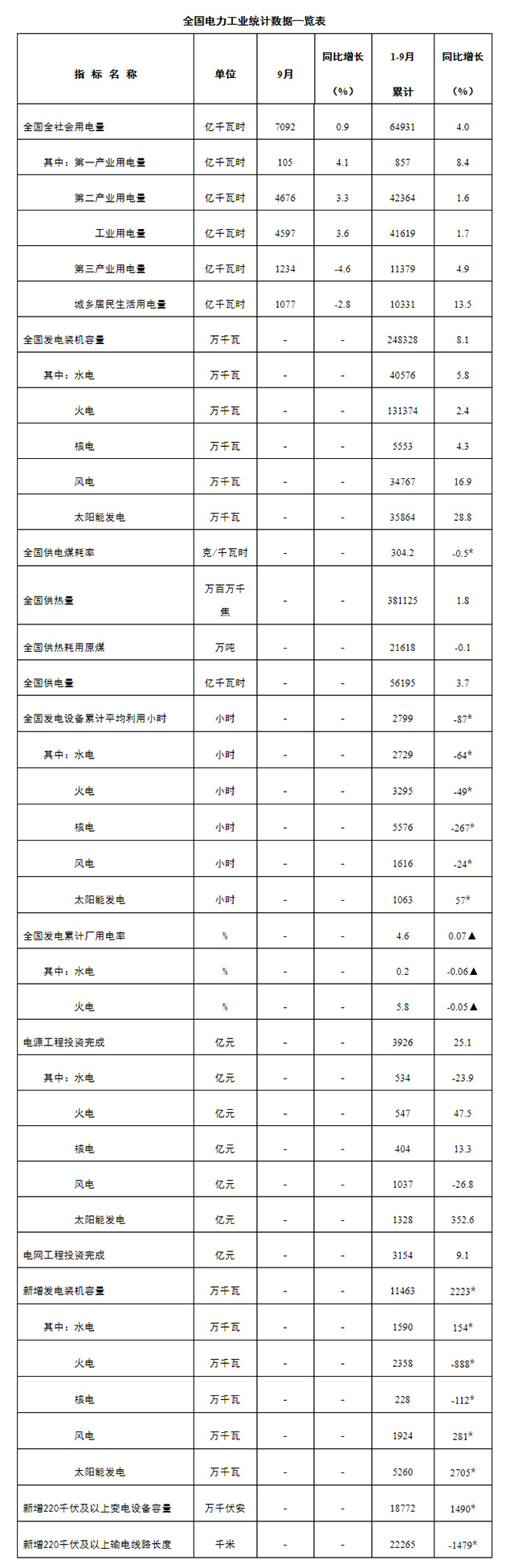10月24日,國(guó)家能源局發(fā)布1—9月份全國(guó)電力工業(yè)統(tǒng)計(jì)數(shù)據(jù)。