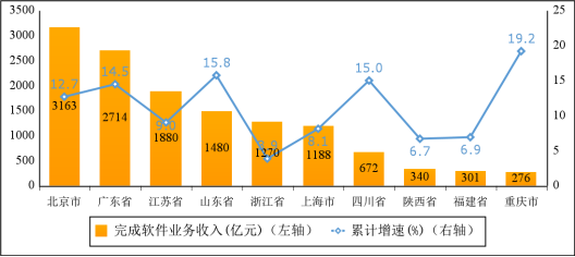 主要軟件大省收入占比小幅提升。1—2月份,軟件業(yè)務(wù)收入居前5名的省份中,北京市、廣東省、江蘇省、山東省和浙江省軟件收入分別為3163億元、2714億元、1880億元、1480億元和1270億元,分別增長(zhǎng)12.7%、14.5%、9.0%、15.8%和3.9%,五?。ㄊ校┖嫌?jì)軟件業(yè)務(wù)收入65074億元,占全國(guó)比重為72.7%,占比較去年同期提高0.5個(gè)百分點(diǎn)。