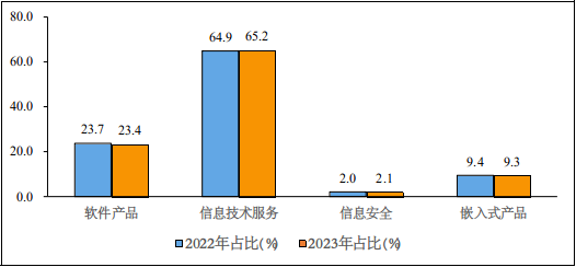 圖4 2022年和2023年1—2月份軟件業(yè)分類(lèi)收入占比情況