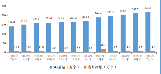 5G網(wǎng)絡(luò)建設(shè)方面。截至7月末,5G基站總數(shù)達(dá)305.5萬個,占移動基站總數(shù)的26.9%。
