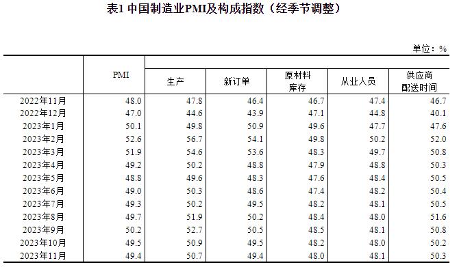 2023年11月中國采購經(jīng)理指數(shù)運(yùn)行情況