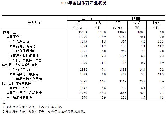 2022年全國體育產(chǎn)業(yè)總規(guī)模與增加值數(shù)據(jù)公告