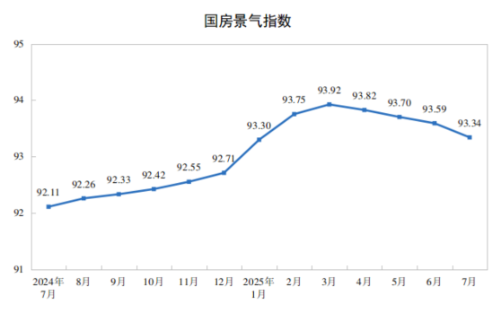 7月份,房地產(chǎn)開(kāi)發(fā)景氣指數(shù)(簡(jiǎn)稱“國(guó)房景氣指數(shù)”)為93.34。