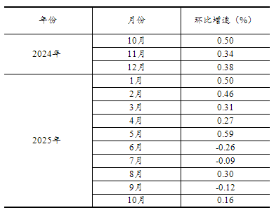 根據(jù)季節(jié)調(diào)整模型自動修正的結(jié)果,對2024年10月份以來的社會消費品零售總額環(huán)比增速進行修訂。修訂結(jié)果及2025年10月份環(huán)比數(shù)據(jù)如下: