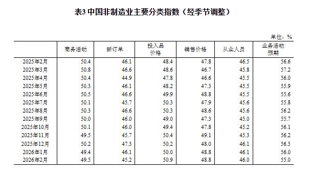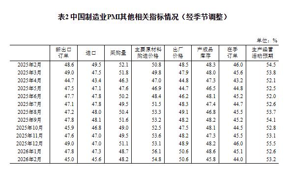 2026年2月中國采購經(jīng)理指數(shù)運(yùn)行情況