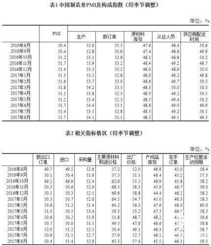 據(jù)國(guó)家統(tǒng)計(jì)局網(wǎng)站消息,2017年8月份,中國(guó)制造業(yè)采購(gòu)經(jīng)理指數(shù)(PMI)為51.7%,比上月上升0.3個(gè)百分點(diǎn),制造業(yè)總體保持穩(wěn)中向好的發(fā)展態(tài)勢(shì)。