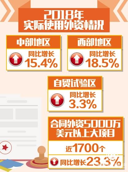 外資大項(xiàng)目實(shí)現(xiàn)快速增長(zhǎng)。2018年,合同外資5000萬(wàn)美元以上大項(xiàng)目近1700個(gè),同比增長(zhǎng)23.3%,顯示外商對(duì)華投資信心不減。并購(gòu)方式實(shí)際使用外資同比增長(zhǎng)28.4%。