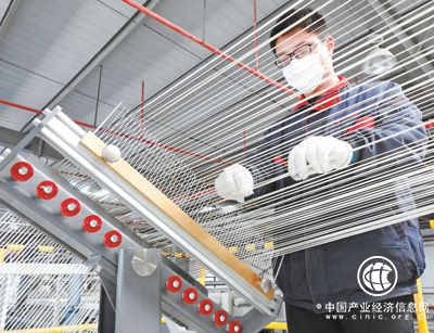 江蘇連云港市開發(fā)區(qū),工人在查看碳纖維生產(chǎn)線運(yùn)行情況。耿玉和 攝(影像中國)
