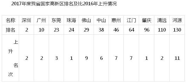 繼廣東區(qū)域創(chuàng)新能力綜合排名去年躍居全國首位之后,廣東省在不久前科技部火炬中心通報的2017年度國家高新區(qū)評價中再創(chuàng)佳績。記者24日從廣東省科技廳獲悉,廣東省原有的11個國家高新區(qū)排名全部實現(xiàn)提升,深圳高新區(qū)躍居全國第二,廣州高新區(qū)進入全國前十。新增汕頭、湛江、茂名3家國家級高新區(qū),目前廣東省國家級高新區(qū)已達到14家。
