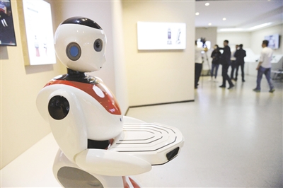 哈工大機(jī)器人集團(tuán)展廳里展示的機(jī)器人。記者 王凱 攝