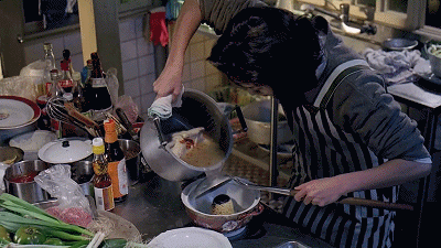 這邊在水池里洗著菜,身后鍋里的油開了,轉(zhuǎn)身端菜下鍋大火猛炒,霎時(shí)油煙四溢、熱氣蒸騰。油沫、菜屑濺得到處都有,水漬滿地,做飯的人汗水淋漓......一頓中餐就是一場(chǎng)戰(zhàn)事。
