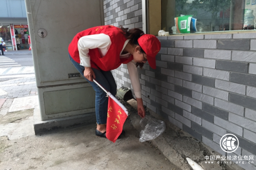 圖為:嵊州市煙草專賣局組織“香溢”志愿者參加文明創(chuàng)建活動