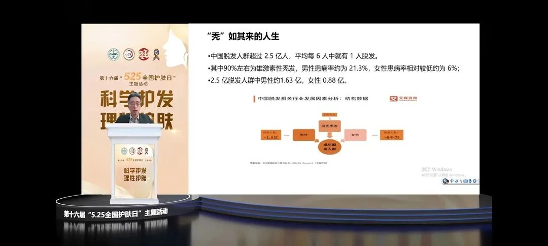 頭皮問題在互聯(lián)網(wǎng)上一直是一個(gè)頗受關(guān)注的熱點(diǎn)問題,尤其是脫發(fā),更是年輕人在網(wǎng)絡(luò)上的必聊話題。那么面對(duì)脫發(fā),究竟是否該過分焦慮,而年輕人又應(yīng)該如何鑒別、預(yù)防和及時(shí)治療呢? 由馥綠德雅支持贊助的“5.25全國(guó)護(hù)膚日”主題峰會(huì)中,中國(guó)整形美容協(xié)會(huì)毛發(fā)醫(yī)學(xué)分會(huì)候任會(huì)長(zhǎng)、復(fù)旦大學(xué)附屬華山醫(yī)院植發(fā)中心主任吳文育教授開啟講座,解析脫發(fā)市場(chǎng),幫助年輕人克服脫發(fā)危機(jī)。
