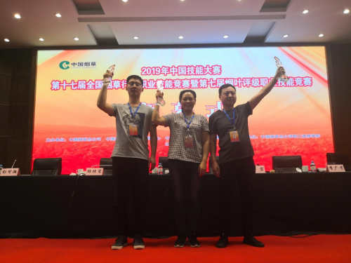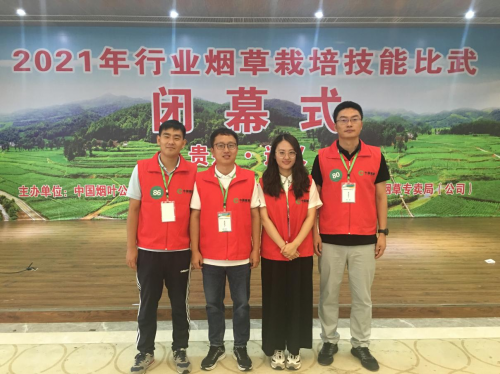 張樹(shù)偉(左二)、劉新源(右一)在2021年煙草行業(yè)煙草栽培技能比武中分獲第一名和第七名佳績(jī)。