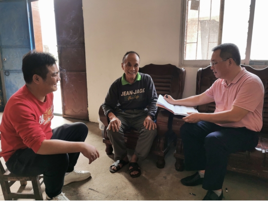 圖為:宜州煙草選派駐村第一書記黃志旺到小隘村任職后召開交接座談會(huì)。(劉俊 攝)