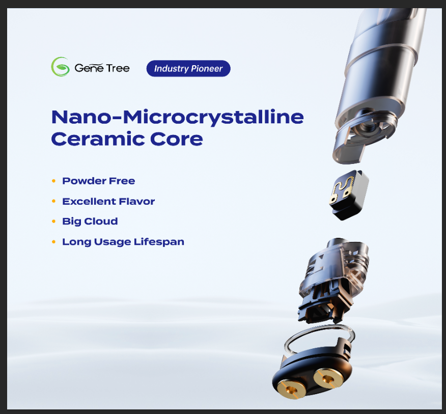 吉邇陶瓷霧化技術(shù)致力于成為霧化技術(shù)的引領(lǐng)者,通過納米微晶材料與技術(shù)創(chuàng)新,為客戶帶來自然愉悅的霧化體驗。吉邇納米微晶陶瓷霧化技術(shù)從厚膜技術(shù)到薄膜技術(shù)、從線加熱面加熱到體加熱,不斷優(yōu)化霧化芯數(shù)據(jù)模型,不斷提升研發(fā)實力,解決行業(yè)霧化芯痛點。已推出Gene Tree厚膜技術(shù),具備不掉粉不粘粉,產(chǎn)品更安心,霧化更充分,壽命更長久,還原度更高等5大技術(shù)優(yōu)勢。