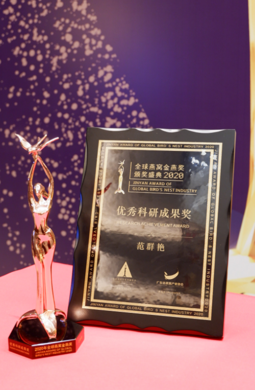 范群艷積極主動(dòng)帶領(lǐng)團(tuán)隊(duì)進(jìn)行燕窩相關(guān)研究項(xiàng)目,推動(dòng)產(chǎn)生眾多優(yōu)秀科研成果,為燕窩產(chǎn)品的創(chuàng)新發(fā)展做出杰出貢獻(xiàn)。在“2020年度全球燕窩金燕獎(jiǎng)”頒獎(jiǎng)典禮,范群艷榮獲“優(yōu)秀科研成果獎(jiǎng)”;在2020第四屆中國食品產(chǎn)業(yè)發(fā)展年會(huì),范群艷作為主要完成人之一的項(xiàng)目——《即食燕窩系列產(chǎn)品的關(guān)鍵技術(shù)創(chuàng)新及其產(chǎn)業(yè)化》榮獲“中國食品工業(yè)協(xié)會(huì)科學(xué)技術(shù)獎(jiǎng)特等獎(jiǎng)”。懷揣著對燕窩事業(yè)的執(zhí)著追求和滿腔赤忱,范群艷潛心專研,斬獲了諸多行業(yè)榮譽(yù),取得協(xié)會(huì)認(rèn)可;同時(shí),作為燕之屋副總經(jīng)理、研發(fā)總監(jiān),范群艷以自身專業(yè)的研發(fā)能力帶領(lǐng)科研團(tuán)隊(duì),扎實(shí)做好技術(shù)和產(chǎn)品工作,不斷打磨提升品牌的核心競爭力,為市場提供更專業(yè)、更優(yōu)質(zhì)的燕窩產(chǎn)品,推動(dòng)燕窩行業(yè)的高質(zhì)量發(fā)展。