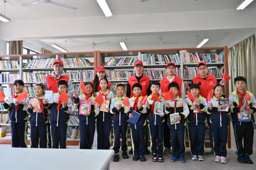 圖為:“香溢”志愿者為孩子們送上全體職工自發(fā)捐贈(zèng)的精美圖書