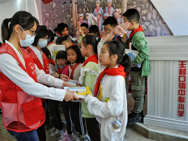 活動的最后,“香溢”志愿者們?yōu)橥醮蹇阪?zhèn)中心小學的學生們送上了課外書籍和學習文具用品,讓愛心圖書伴同學們溫暖前行,同學們也用“敬禮”的方式來回復志愿者們以表示感謝。