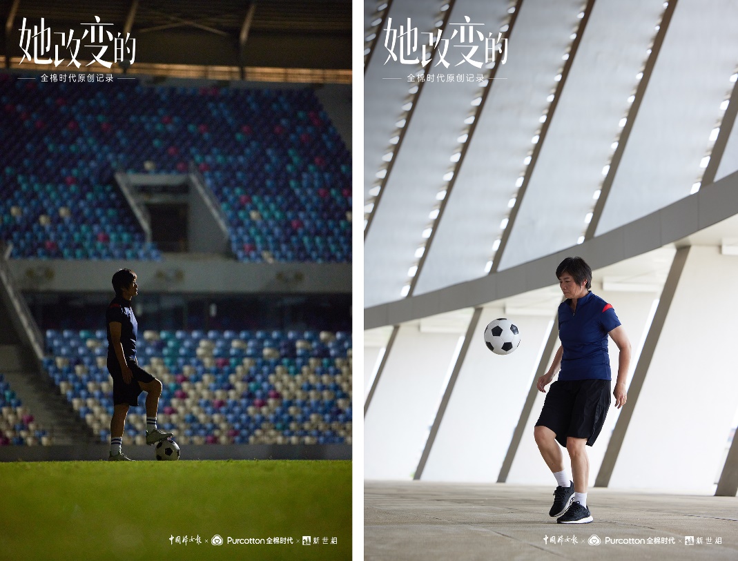 5月31日,全棉時代聯(lián)合中國婦女報、新世相共同推出原創(chuàng)記錄系列「她改變的」,聚焦女足教練水慶霞,講述她帶來改變的故事。片頭用一朵棉花的綻放,寓意溫柔而堅韌的女性力量。該片一改常規(guī)紀(jì)錄片的拍攝方式,引入業(yè)內(nèi)成熟紀(jì)錄片的操作手法,給觀眾帶來沉浸式的大片體驗。同時,全棉時代特邀“中國最好的肖像攝影師”肖全,為水慶霞拍攝了充滿態(tài)度和故事感的人物海報。