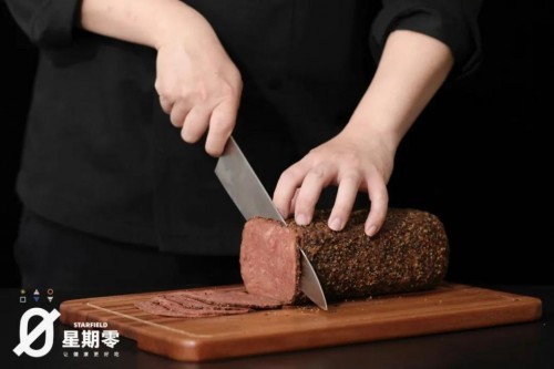 星期零大師植物牛肉片的厲害之處還在于,其口感上具有嚼勁,與真肉基本無(wú)差別。據(jù)介紹,這得益于「星期零」極具創(chuàng)新性的前沿技術(shù)“整肉塑形”。該技術(shù)的關(guān)鍵是采用“間斷式針織風(fēng)味法”和“精進(jìn)分子酶法交聯(lián)術(shù)”,更好地模擬牛肉的質(zhì)感。