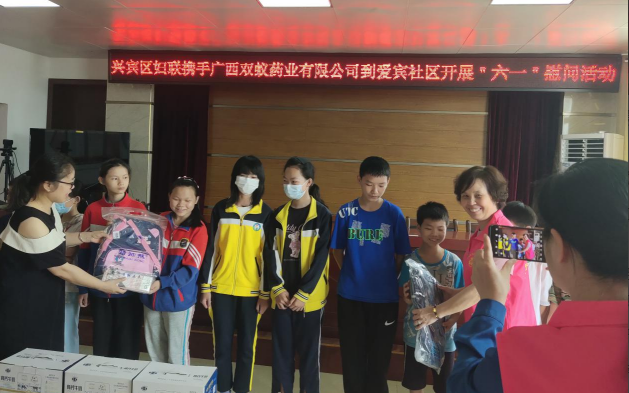 值此“六一”國際兒童節(jié)即將到來之際,來賓市興賓區(qū)婦聯(lián)攜手廣西雙蟻藥業(yè)有限公司到興賓區(qū)河西街道愛賓社區(qū)開展豐富多彩的“六一”兒童節(jié)慰問活動,并為該社區(qū)15名留守(困境)兒童送上牛奶、書包、鉛筆盒等生活用品和學(xué)習(xí)用品,及節(jié)日的祝福,與孩子們提前度過一個難忘而快樂的節(jié)日。