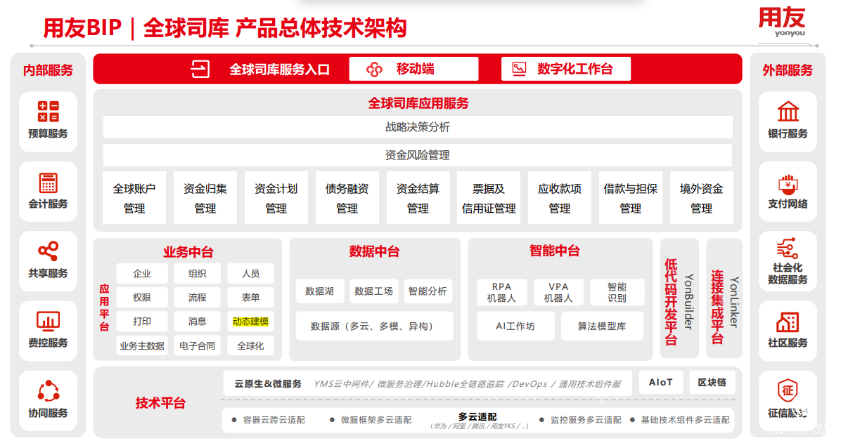 圖2 用友BIP全球司庫產(chǎn)品技術(shù)架構(gòu)