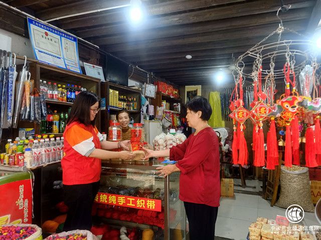 圖為義烏煙草“香溢”志愿者在農(nóng)村終端驛站幫助當?shù)剞r(nóng)戶銷售紅糖等農(nóng)副產(chǎn)品