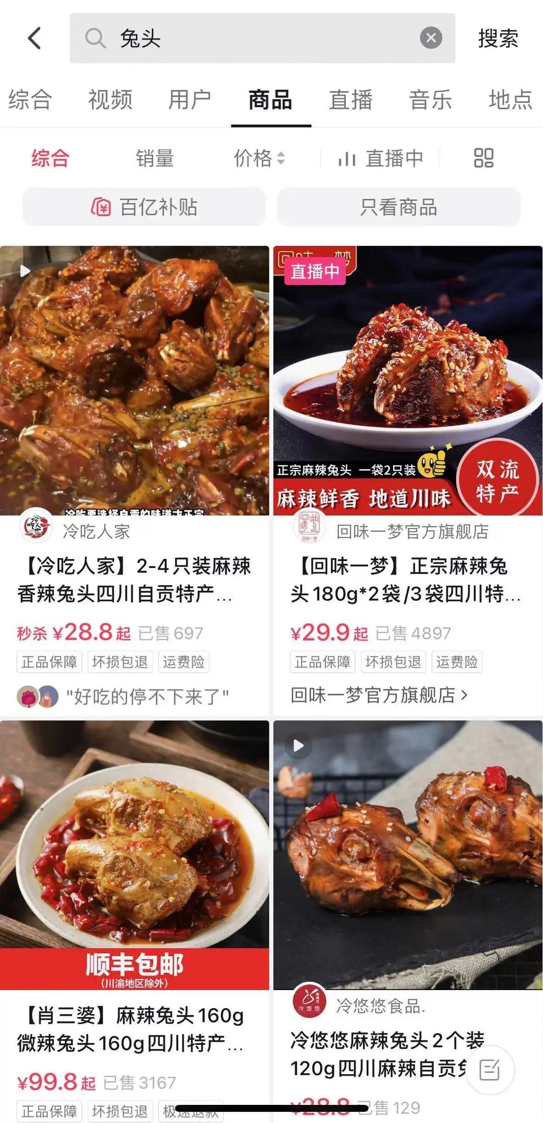 據(jù)說(shuō)四川人每年會(huì)吃掉2億多個(gè)兔頭,這一數(shù)字依舊在高速增加。這不僅與上千家川菜館子的菜單相關(guān),更與線上渠道的零食產(chǎn)品帶來(lái)的動(dòng)力相關(guān)。如果在抖音搜索與“兔”相關(guān)的商品,你就會(huì)發(fā)現(xiàn)從自貢冷吃兔,到川味麻辣兔,再到五香兔頭、兔丁、烤全兔。銷(xiāo)量以千計(jì)的鏈接不勝枚舉。