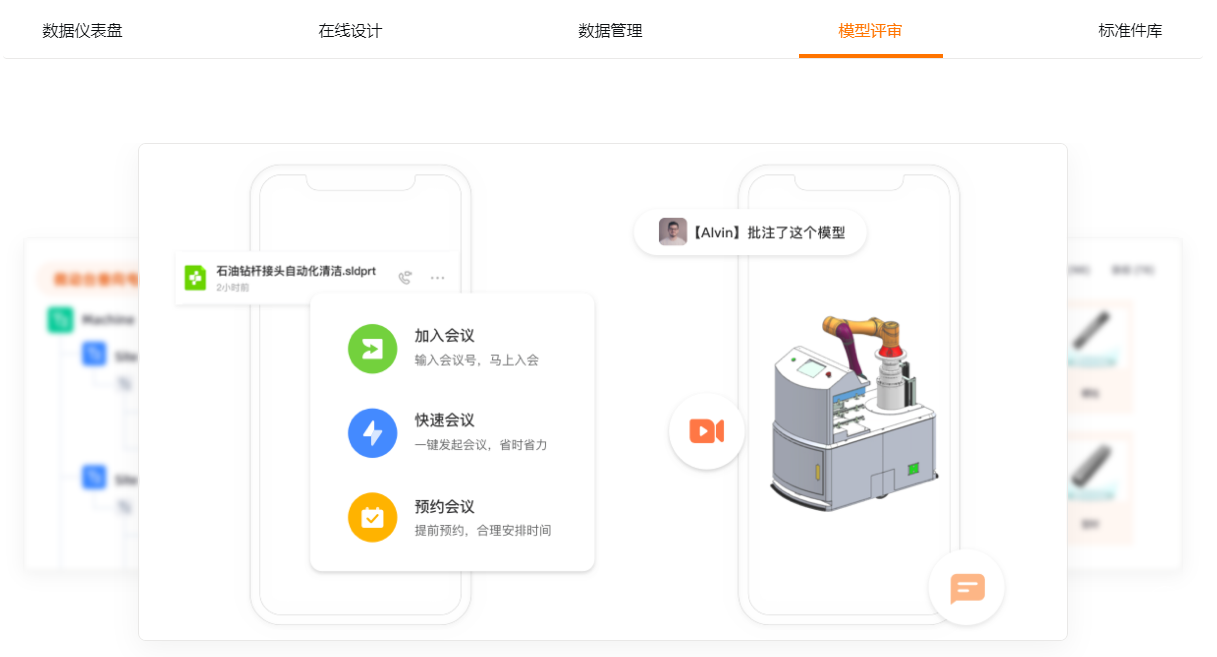 橙色云CRDE云研發(fā)平臺(tái)支持對(duì)內(nèi)多方協(xié)同。在云上工業(yè)設(shè)計(jì)軟件中,工程師可共同在線開(kāi)展研發(fā)、共享、交流、變更、評(píng)審等工作,降低溝通協(xié)作成本,幫助企業(yè)突破原有能力、技術(shù)、地域和時(shí)空的限制,鏈接全國(guó)乃至全球各地的專(zhuān)業(yè)技術(shù)資源,為企業(yè)實(shí)施全場(chǎng)景、全方位、全過(guò)程的數(shù)字化轉(zhuǎn)型提供建議和落地服務(wù)。另外,云端協(xié)同工作人員異地技術(shù)方案展示、異地辦公、居家辦公、免安裝,三維圖紙內(nèi)直接發(fā)起視頻會(huì)議。