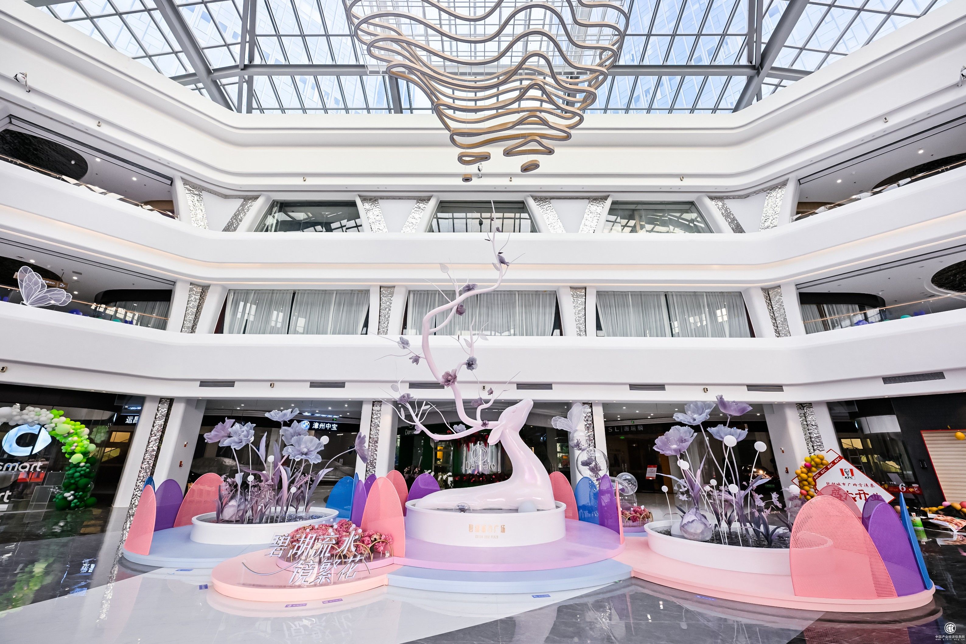 活動(dòng)期間,以“碧湖流水鏡繁花”為主題的藝術(shù)美陳展拉開(kāi)非凡序幕。以“水”“仙”“花”為設(shè)計(jì)理念,將近200平場(chǎng)所打造為城市花園島嶼,場(chǎng)景綜合展示碧湖景觀、建筑、和裝置藝術(shù),以夢(mèng)境為主題,創(chuàng)作出一個(gè)超現(xiàn)實(shí)魔幻主義場(chǎng)所,通過(guò)美陳展覽賦能商業(yè)空間。