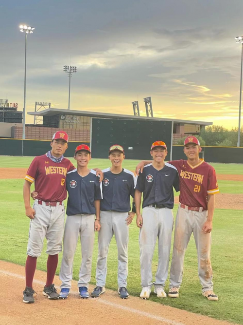 從左至右:華旦才讓、林梓強、何鑫、郭海成、朱天舟在MLB高校巡回展示賽
