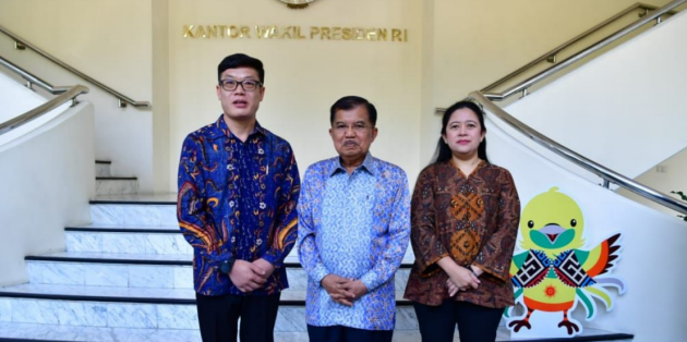 艾雪集團總裁王嘉成先生(左)與印尼前副總統(tǒng)Dr. (H.C.) Drs. H. Muhammad Jusuf Kalla(中),印尼委員會主席Dr. Puan Maharani Nakshatra Kusyala Devi, S.Sos(右)合影留念