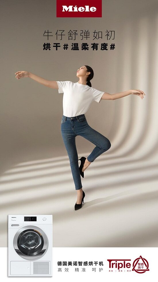 日常穿搭,牛仔褲洗曬后緊繃干硬?美諾Miele智感烘干機精準烘干,均勻烘干面料纖維,遵循織物的分子運動,讓牛仔褲舒彈如初,保護面料的同時固色護色,呵護衣物鮮色盎然,盡情展現(xiàn)瀟灑姿態(tài)。