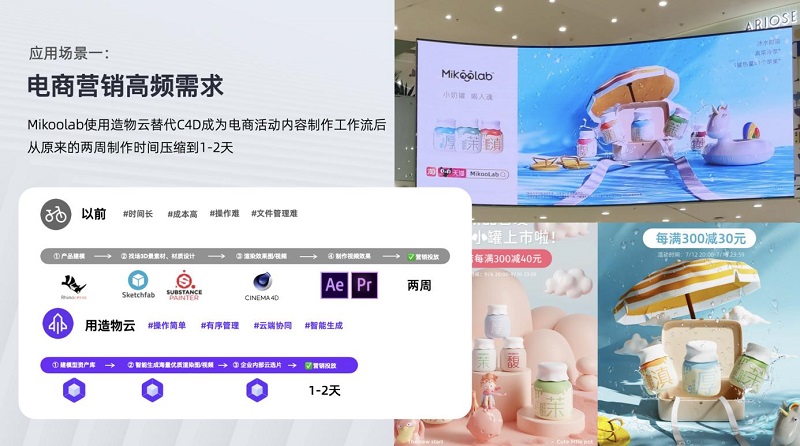 此次會上,造物云還將開放企業(yè)級產(chǎn)品的內(nèi)測申請。相關(guān)負責(zé)人介紹,造物云的3D可視化技術(shù)可以對食品快消、美妝個護、家居日用、母嬰兒童、3C數(shù)碼這些產(chǎn)品長尾、高頻營銷、情感溢價等屬性的行業(yè),帶來顯著的營銷降本增效的效果,節(jié)省高達90%的視覺制作預(yù)算。造物云的企業(yè)版更加關(guān)注于企業(yè)內(nèi)部3D資產(chǎn)管理、內(nèi)容創(chuàng)作與協(xié)作、內(nèi)容分發(fā)管理的能力。