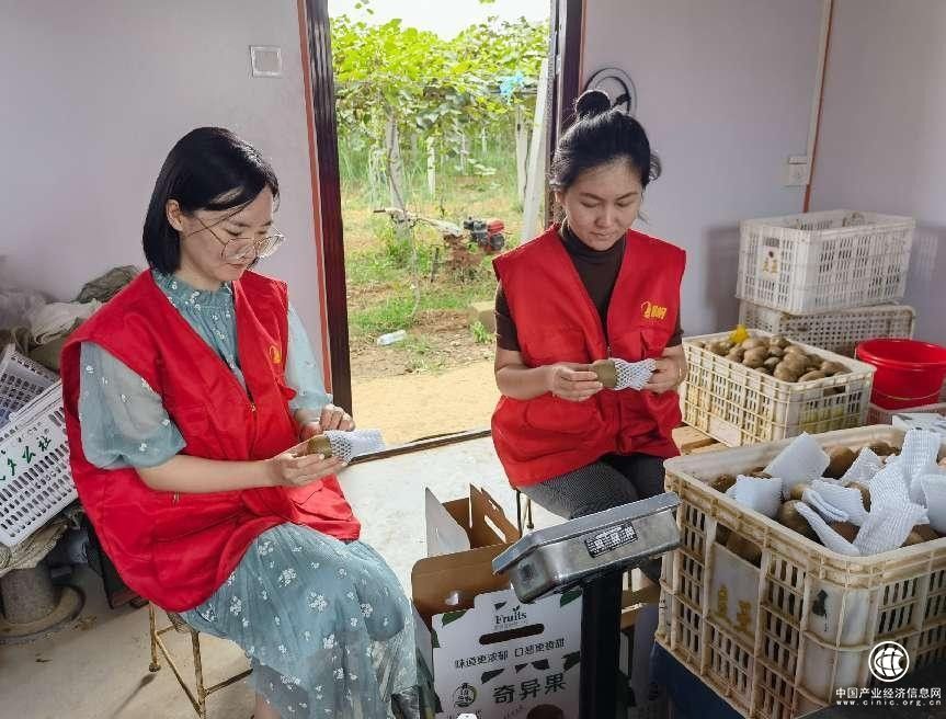 “來來來,家人們,我們又大又甜又新鮮的獼猴桃,皮薄肉厚,香甜多汁,不打農(nóng)藥,不添加任何的化學(xué)藥物,買過我們家的都說甜的,好吃不貴經(jīng)濟又實惠啦,喜歡吃水果的抓緊啦!”田間地頭上,服務(wù)隊成員滿臉笑容,和黃老板一起通過直播帶貨。那邊,游客們挎著籃子,行走在一排排獼猴桃中,和自己的家人享受采摘的樂趣。里面,服務(wù)隊隊員們忙著將一顆顆獼猴桃套袋裝箱,準(zhǔn)備發(fā)給外地的客人……獼猴桃的銷路解決了,黃老板的臉上終于露出了笑容。