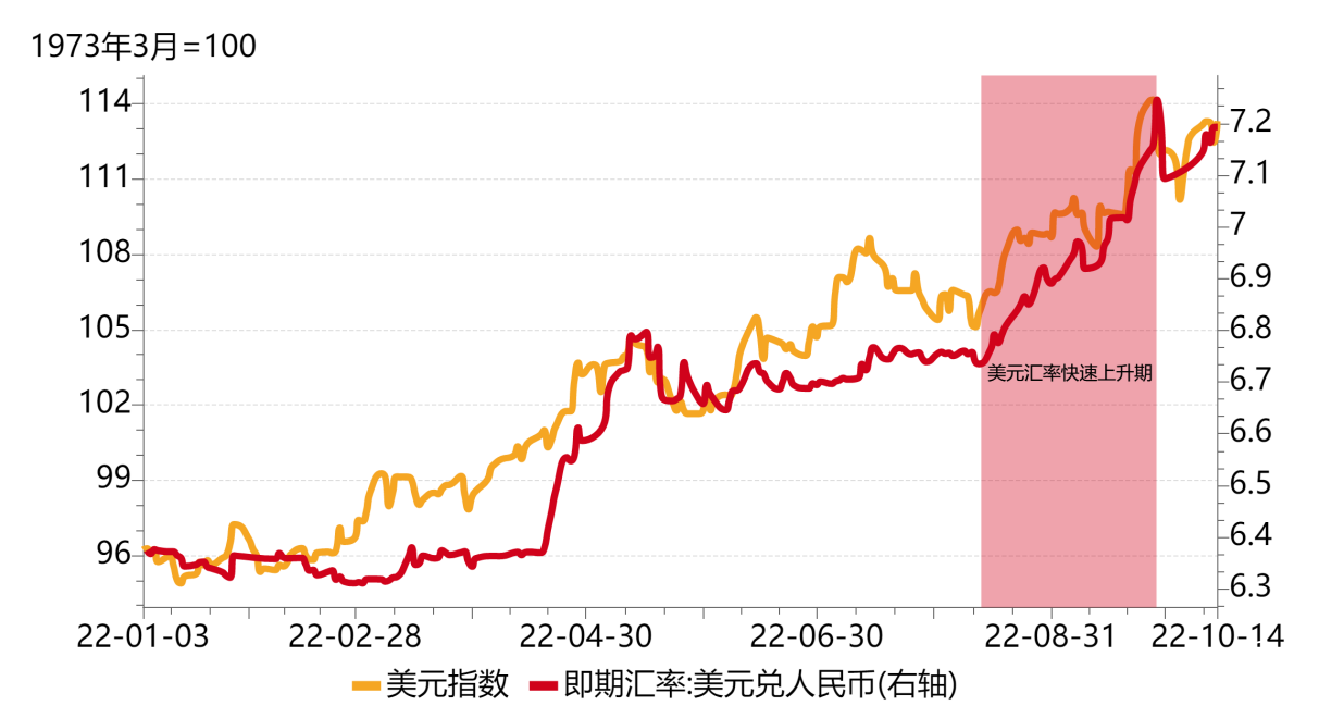一、美元匯率快速上升,中國(guó)股市對(duì)于匯率波動(dòng)出現(xiàn)過(guò)度反應(yīng)