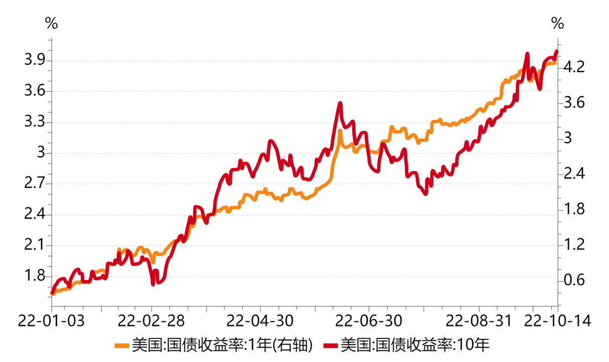 圖4 1年期和10年期美國(guó)國(guó)債收益率走勢(shì)
