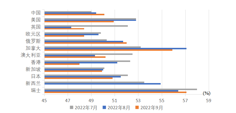 圖7 2022年三季度各國(guó)制造業(yè)PMI變化