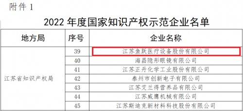 圖:魚躍醫(yī)療榮獲2022年度“國家知識產(chǎn)權(quán)示范企業(yè)”稱號