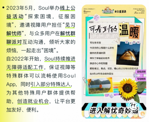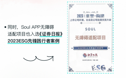 Soul的無障礙適配的工作項目,在2023年持續(xù)受到人民網(wǎng)和證券日報的肯定。