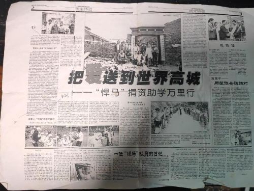 圖為2004年所刊登的有關(guān)“悍馬”捐資助學(xué)的報紙